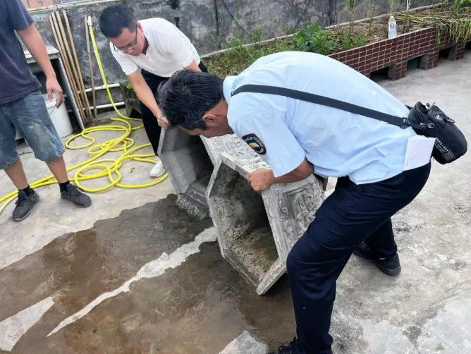 此次行动得到了市级部门的有力支援。市城管局派出40余名党员干部组成的精干队伍下沉谢岗村。他们身着红马甲,深入村居一线,无论是清扫街巷,还是仔细翻查角落清理积水容器,均冲锋在前,以实际行动践行初心使命,为谢岗镇的爱国卫生运动注入“市局力量”,有效鼓舞了基层干部群众的干劲。