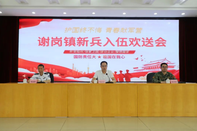 谢岗镇党委副书记叶浩昌,党委委员、武装部部长、征兵办主任杨景新,副镇长、公安局局长周进协,以及镇征兵办领导小组成员单位负责人、村(社区)党组织书记及村民兵连长、入伍新兵及家属参加新兵入伍欢送大会。