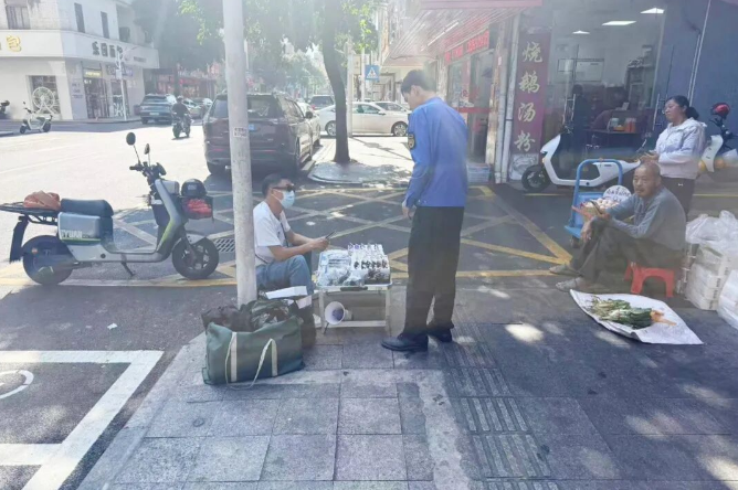 针对流动摊贩占道经营问题,谢岗城管分局立足“民生需求+精细治理”双导向,通过设置临时疏导点,明确经营时间和卫生要求,为摊贩提供合法经营空间。同时,对屡劝不改的占道行为依法查处,确保市容与民生平衡。