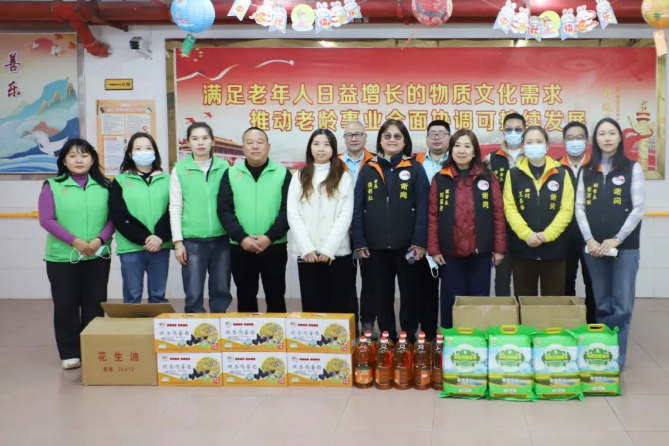 活动现场,谢岗台商分会成员代表与志愿者们为全院长者送上了精心准备的慰问物资,所有物资均采购自谢岗供销社助销的南雄扶贫农产品,包含粮油、大米、面条等日常所需,并逐一送上暖心慰问红包,与长者们促膝交谈,关心他们的生活与健康状况,让长者们切实感受到温暖关爱。