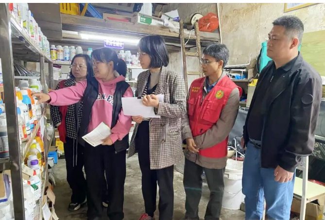 签约仪式结束后,市镇两级农技特派员深入田间地头和农资经营一线,实地走访菜地、美丽庭院示范点;前往祥兴、银兴等农药经营门店开展安全用药指导,并深入黎村稻田查看玉米地的田间长势与生产情况,给出种植指导建议。