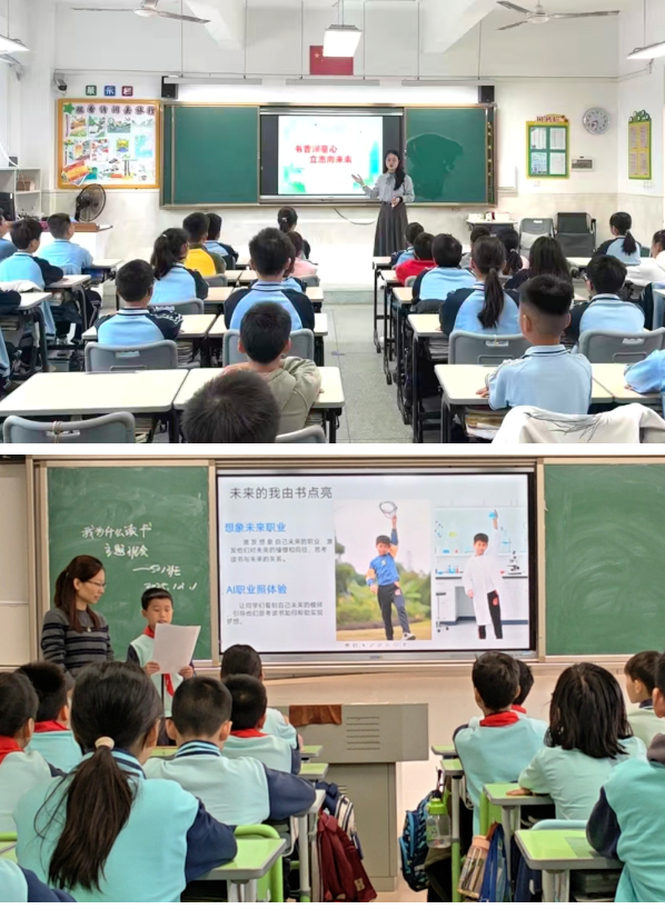 此外,在主题班会课上,学生们畅谈理想,还借助AI技术生成未来职业形象,直观感受读书与梦想的联结。