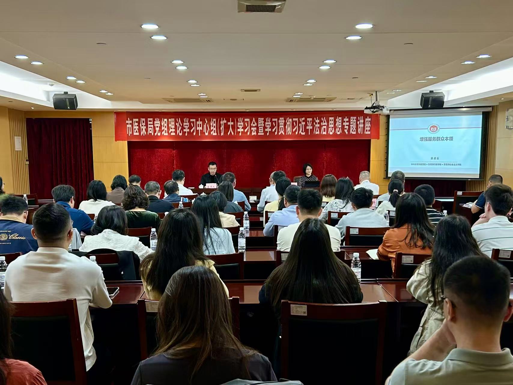 为深入学习贯彻习近平法治思想,坚持执法为民的法治理念,强化领导干部规则和程序思维、权力和责任思维等法治意识,增强依法行政本领,提高服务群众的实践能力,11月11日,市医保局举办党组理论学习中心组(扩大)学习会暨学习贯彻习近平法治思想专题讲座。此次讲座旨在强化全局干部职工的法治思维与依法行政能力,将法治精神深度融入医保工作实践,为推动我市医保事业高质量发展筑牢法治根基。市医保局全体班子成员及市局各科室、市医保中心全体干部职工共70余人参加讲座。