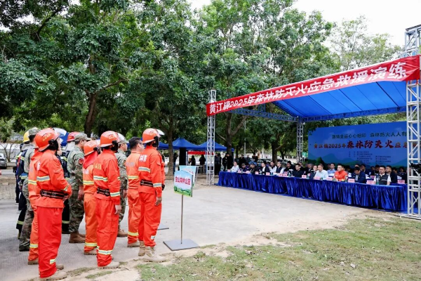 为深入贯彻广东省2025年森林防火宣传月“激情全运心心相印,森林防火人人有责”主题精神,全面提升森林火灾应急救援能力,11月4日下午,黄江镇2025年森林防灭火应急救援演练在宝山森林公园芙蓉寺停车场举行。黄江镇党委副书记、镇长张何担任演练总指挥,广东省樟木头林场党委书记、场长郭业先,黄江镇党委副书记周润良,东莞市应急管理局火灾防治管理科科长许兴华,广东省樟木头林场副场长朱志用,黄江镇副镇长吴东海参加演练