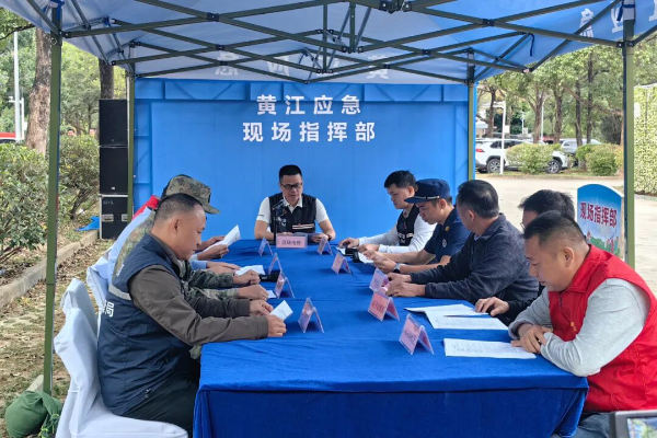 演练模拟护林员在宝山森林公园芙蓉寺北2门开展日常巡查工作时,发现山坡上有烟雾升起,攀爬上去查看后发现林中的杂草和落叶正在起火燃烧。护林员立即上报火情,宝山森林公园迅速组织初期扑救。因火势蔓延,黄江镇应急指挥中心接报后,立即依据《黄江镇森林火灾应急预案》启动四级应急响应。广东省樟木头林场、黄江镇消防救援大队、公安分局、武装部、卫生健康局、经济发展局、鸡啼岗社区等成员单位闻令而动,迅速赶赴现场。