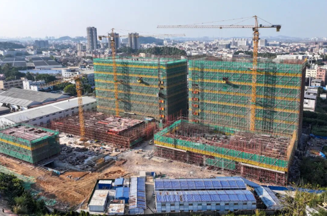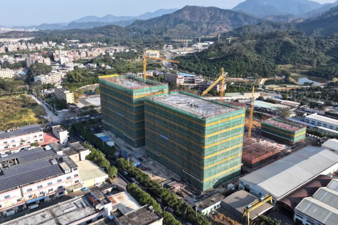 东莞市炀均实业投资有限公司项目负责人林展鹏表示,目前工程进展顺利,1号、2号楼已封顶,4号楼已建至第二层,3号楼基本完成首层施工。宿舍楼和地下室部分,地下室已基本完工,宿舍楼正推进至第三层。