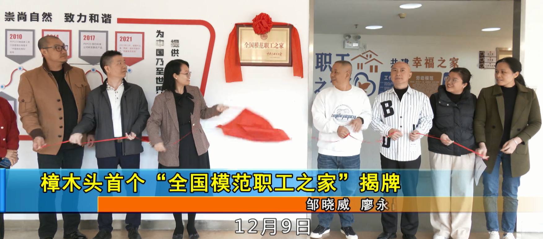 12月9日,樟木头首个“全国模范职工之家”在广东小猪班纳服饰股份有限公司揭牌。