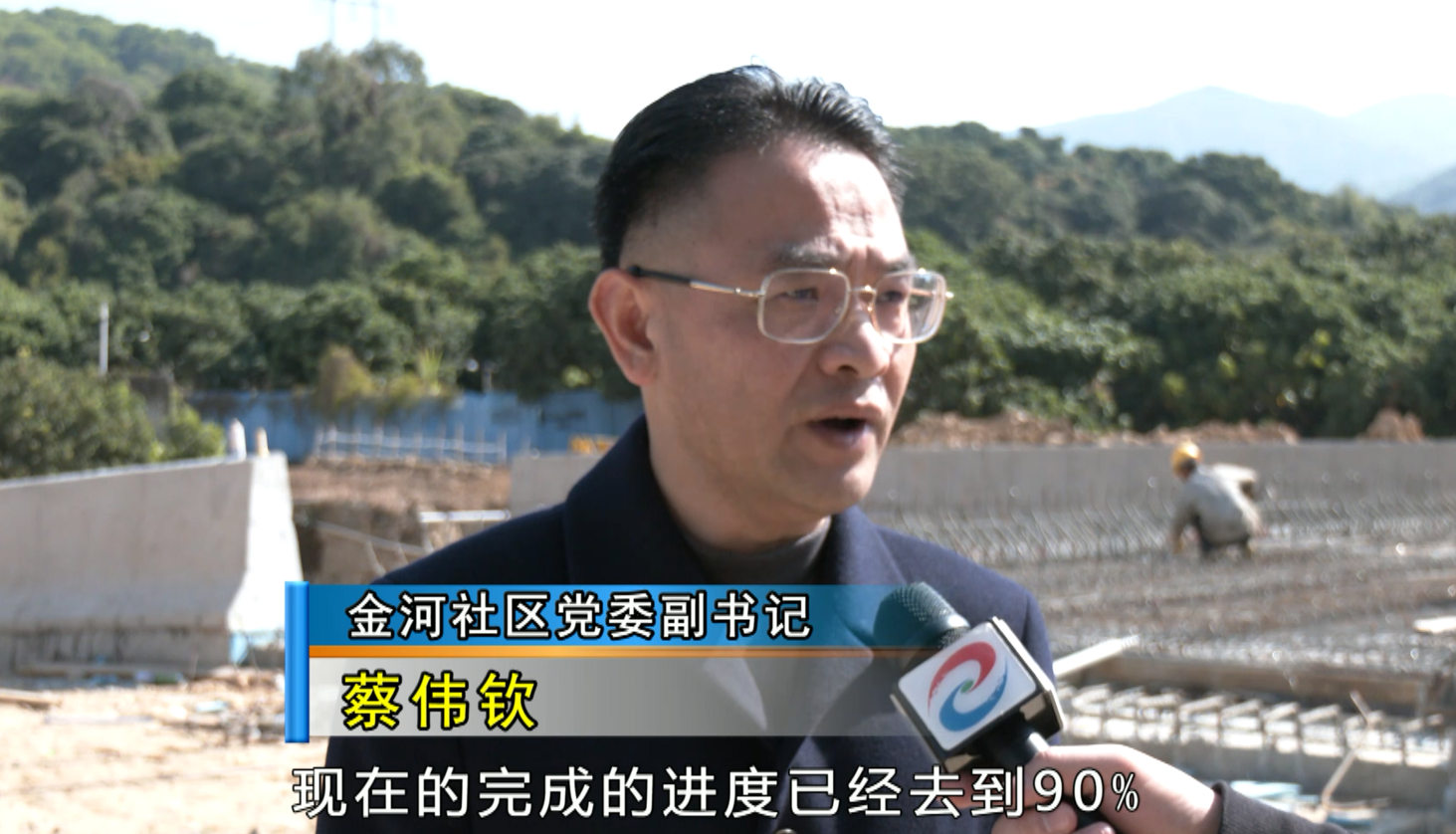金河社区党委副书记蔡伟钦:从(去年)11月初(开工)到现在已经整整三个月,现在的完成的进度已经去到90%,现在剩下周边的那些过了年之后就逐渐完善,目前桥面今天就开始铺设,过两天人走是没问题的。
