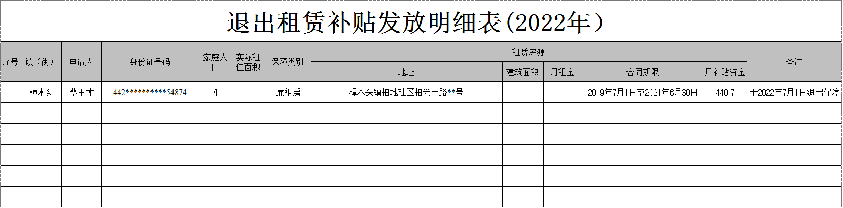 樟木头镇退出租赁补贴发放明细表(2022年)