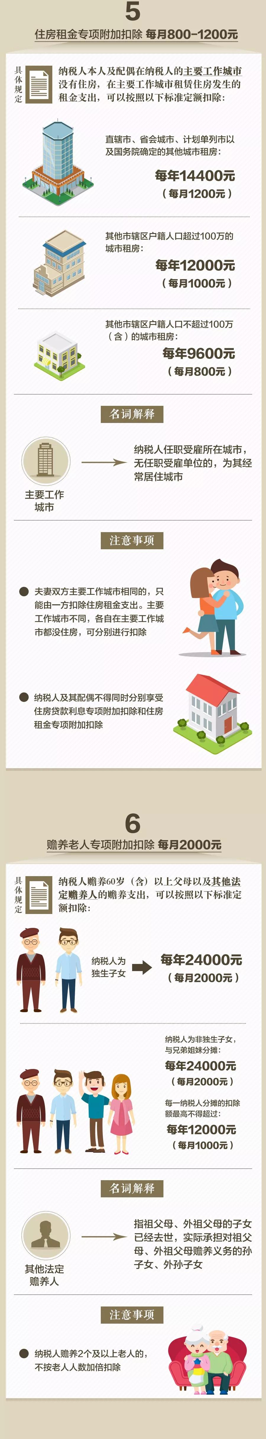 《暂行办法》明确了个人所得税法规定的子女教育、继续教育等6项专项附加扣除的具体实施办法。享受这些专项附加扣除,需要哪些条件?通过这些扣除项目,纳税人可以少缴多少个税?跟随下面这张图,一起来算算。