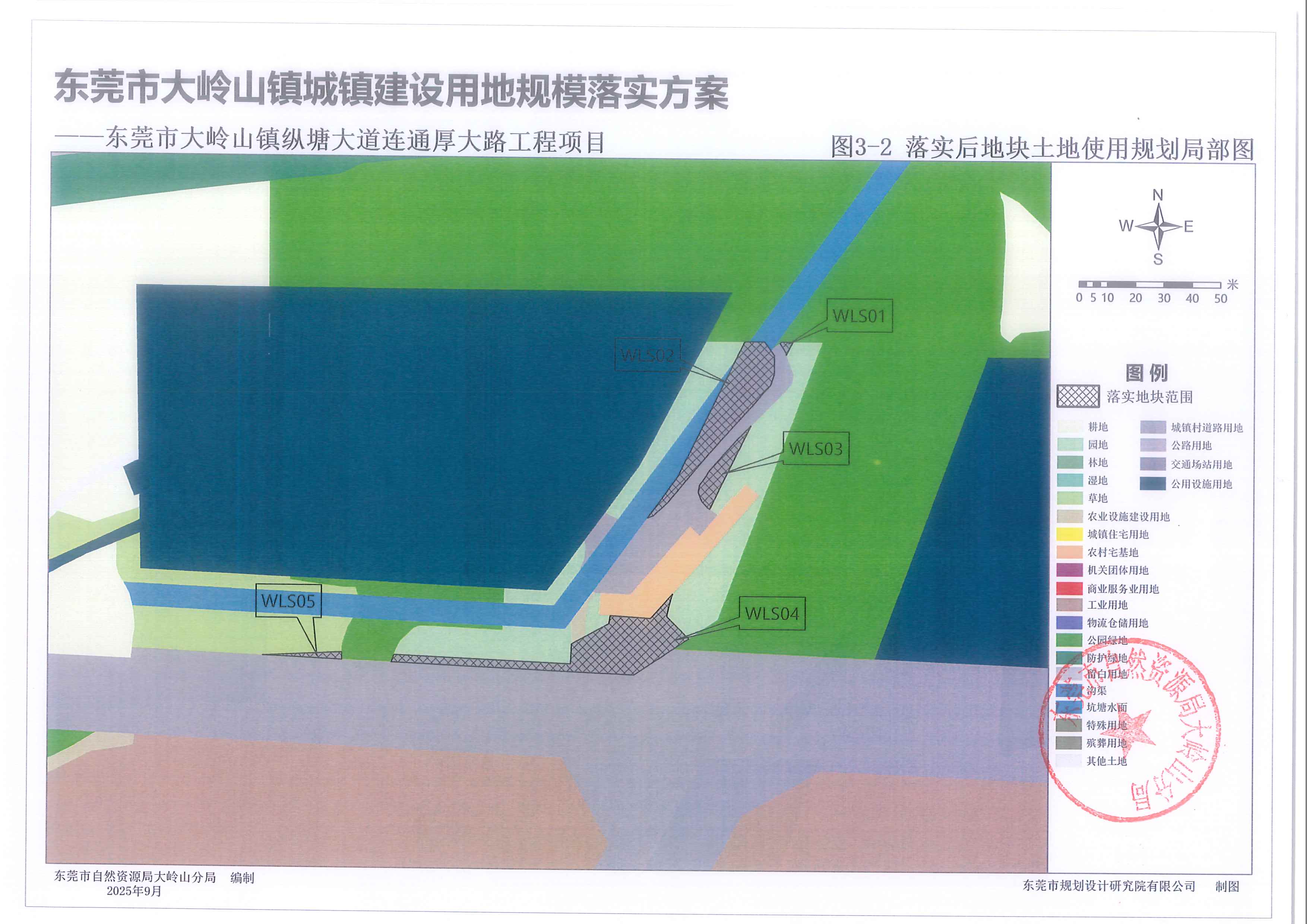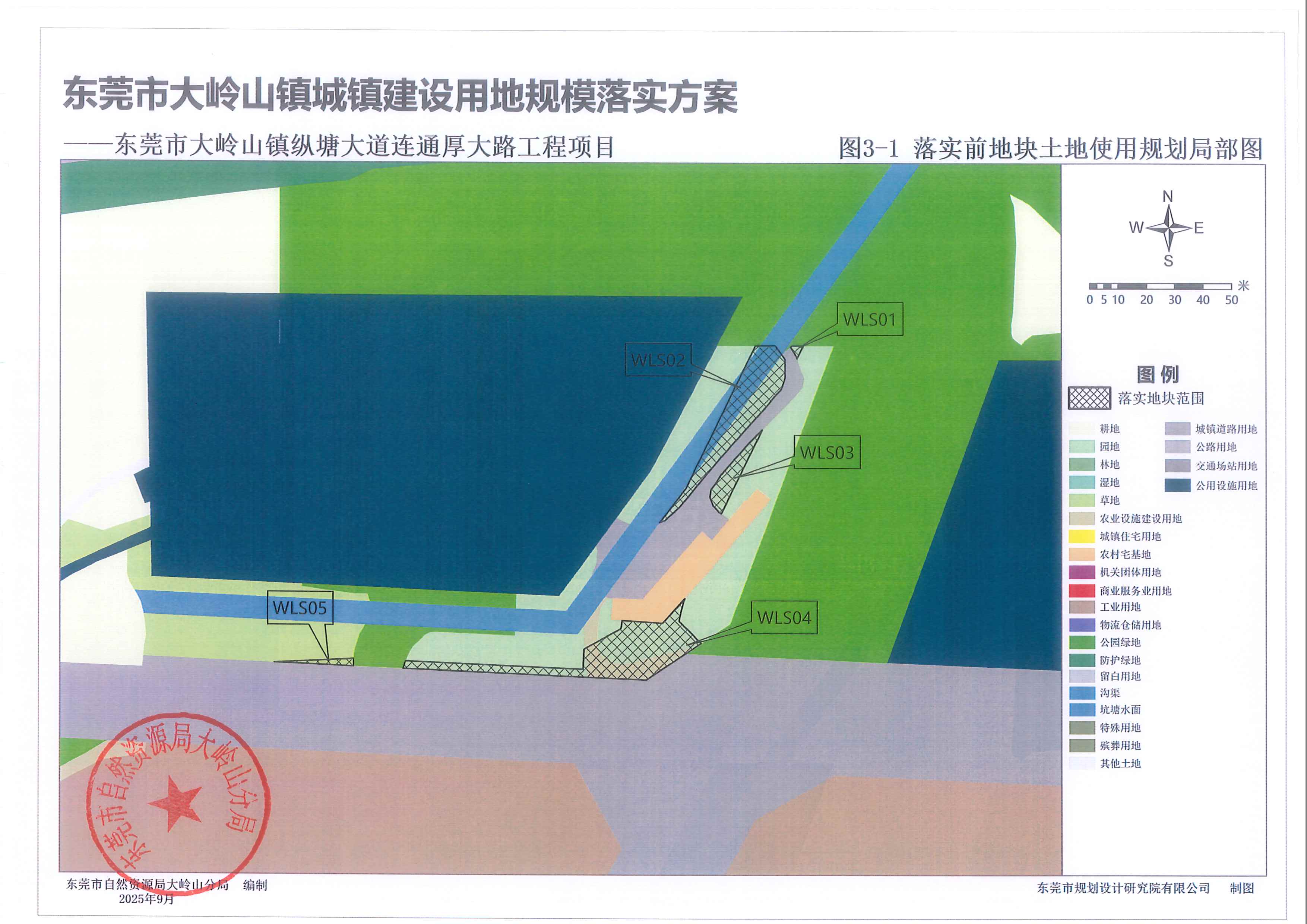东莞市大岭山镇城镇建设用地规模落实方案(东莞市大岭山镇纵塘大道连通厚大路工程项目)的公告.docx