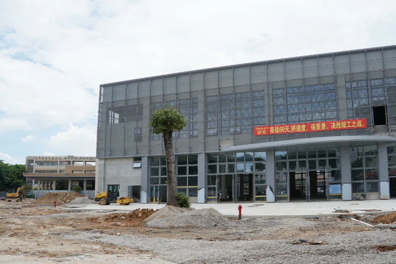 黄江体育馆由原黄江实验小学风雨操场升级改造而成,当前总体进度已达65%,数十名施工人员正昼夜奋战,冲刺八月底的竣工目标。工程总建筑面积近1.44万平方米,相当于两个标准足球场大小,其中室外场地改造面积超1万平方米,涵盖校门外广场、校内入口广场及运动区三大空间。目前,主体体育馆建设已完成90%,水电、消防等基础设施全面竣工,施工人员正紧锣密鼓地进行室内装修收尾工作。
