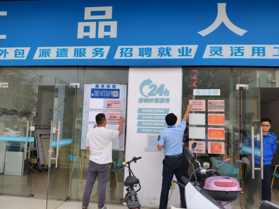 本次联合检查行动,麻涌人社分局联同其他部门深入人力资源服务场所集中区域,重点检查整治未经许可擅自从事职业中介活动、未经许可擅自经营劳务派遣、违规摆摊设点招聘等行为。联合检查组共责令6家无证机构停业,明确要求其在取得相关资质前不得从事人力资源服务、劳务派遣业务,并对相关经营者阐释法规条款,严肃强调违法经营的法律后果。行动中共清理违规招聘广告、宣传资料50余处。