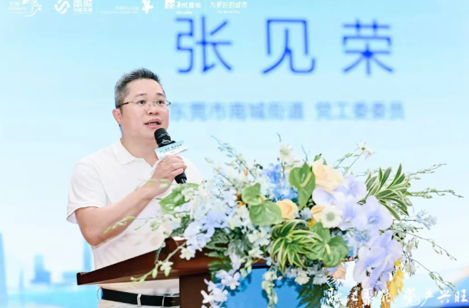 南城街道党工委委员张见荣代表主办方致辞,他表示,金融业早已成为南城街道支柱产业,辖内汇集金融机构142家,街道竞争力不断提升,市场主体总量突破10万大关,集聚了8个优质产业园区、1350家四上企业、106家专精特新企业和2.22万名高层次人才。