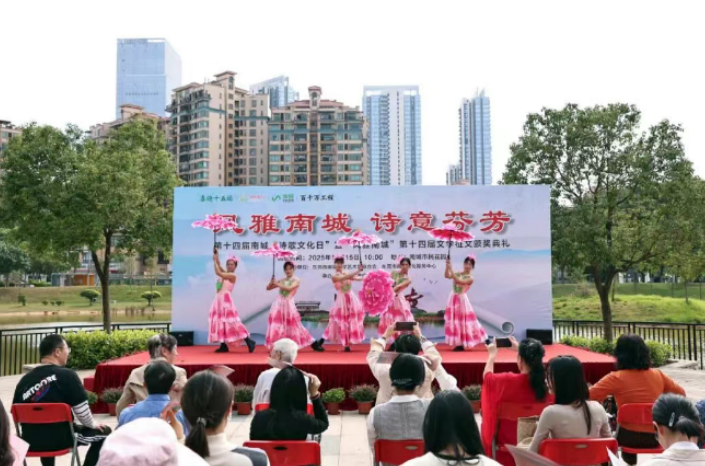 风雅南城,诗意芬芳。11月15日,由东莞南城文联、南城文化服务中心主办,南城作协承办的第十四届南城“诗歌文化日”暨“风雅南城”第十四届文学征文颁奖典礼在南城市民花园举行。来自全市各镇街(园区)的获奖作者、表演嘉宾及市民群众齐聚一堂,以诗为媒、以文会友,共赴这场一年一度的文化盛宴。