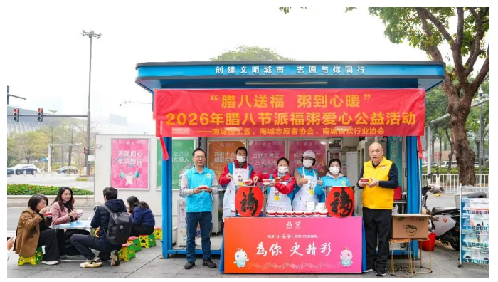 “2026腊八送福 粥到心暖”大型公益活动,今天上午在南城启动,20多个派发点同步送出祝福,共向市民免费派发上万份热气腾腾的腊八粥,为东莞全域文明增光添彩。