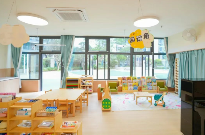 南城阳光第四幼儿园,坐落于南城核心地带 园所占地3600㎡,户外活动面积占比74.5%(2682.65㎡),成为南城幼儿园的“运动担当”之一,幼儿园整体设计充满童趣,色彩明快、线条流畅,走进园区 仿佛进入,一座专属孩童的“迷你城市”。专业儿童运动场上,大型攀爬架、平衡木阵、沙水共生区组成“体能挑战基地”,为孩子们提供尽情奔跑、探索的天地。幼儿园将“智慧”与“童趣”自然融合,12间标准教室,配备一体机教学屏+钢琴+空调,实木桌椅圆角防撞,同时绘本架伸手可及,根据幼儿的年龄特点精心挑选书籍,打造舒适、现代化的成长环境。