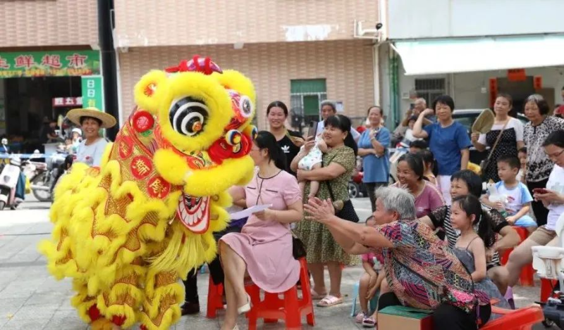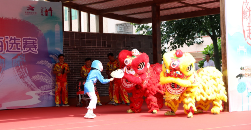 ▲传统文化舞狮《棣萼雄狮,古村游》