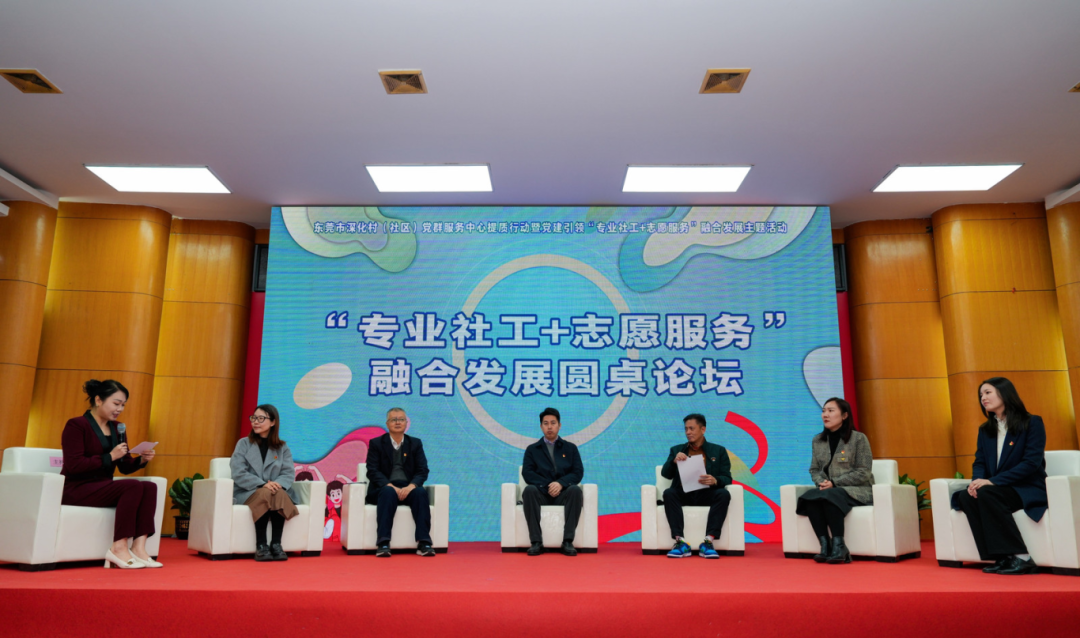 高级社会工作师吴懿艳、袁美芝分别从项目全流程督导与专业赋能角度,分享了社工在融合中的“规划师、督导师、赋能者”角色。东莞理工学院黄俊辉教授从“强党建、建机制、创特色、惠民生”12个字阐释了党建引领下“专业社工+志愿服务”融合发展的时代意义与实践路径,为基层探索提供了学术支撑。