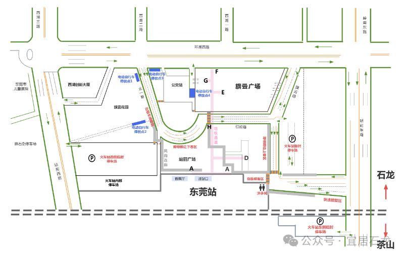 东莞火车站周边临时道路的贯通,为片区织就了一张高效便捷的交通网,进一步串联起东莞火车站、旗云广场、环湖西路、站前东路等周边道路网,形成“内畅外联”的交通格局。除了交通组织的优化,配套设施的升级更显人文关怀:新建的电动自行车停放点疏密有致,加快建设的临时停车场“蓄势待发”,隔离护栏、交通标识“各司其职”,风雨连廊为旅客遮挡风雨;出租车候客区、即停即走下客区、即停即走上客区、商旅候客区、快速接驳区等多种功能区清晰分明,让出行的每一个环节都从容不迫。家住在西湖村的市民李先生体验过东莞火车站周边临时道路的便捷后表示:“现在东莞火车站周边的道路经过重新梳理,我过来乘坐地铁减少了不必要的绕行,时间缩减了一半,大大提高了市民的出行幸福感!”