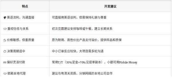 (2)时间观念不强。对事先联系好的约会,有时可能不准时到达,也有时甚至可能不去赴约。商务会议可能延迟15-30分钟,属正常现象,保持耐心。交货期建议预留10-15天缓冲,以防清关或物流延误。