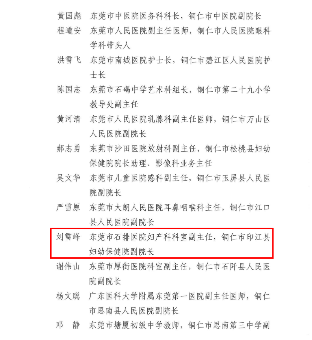 近日,广东省粤黔协作工作队对2022年度在粤黔协作工作中表现突出的个人予以通报表扬,东莞市石排医院妇产科副主任医师刘雪峰喜获“广东省粤黔协作工作队2022年粤黔协作工作突出个人”荣誉称号。