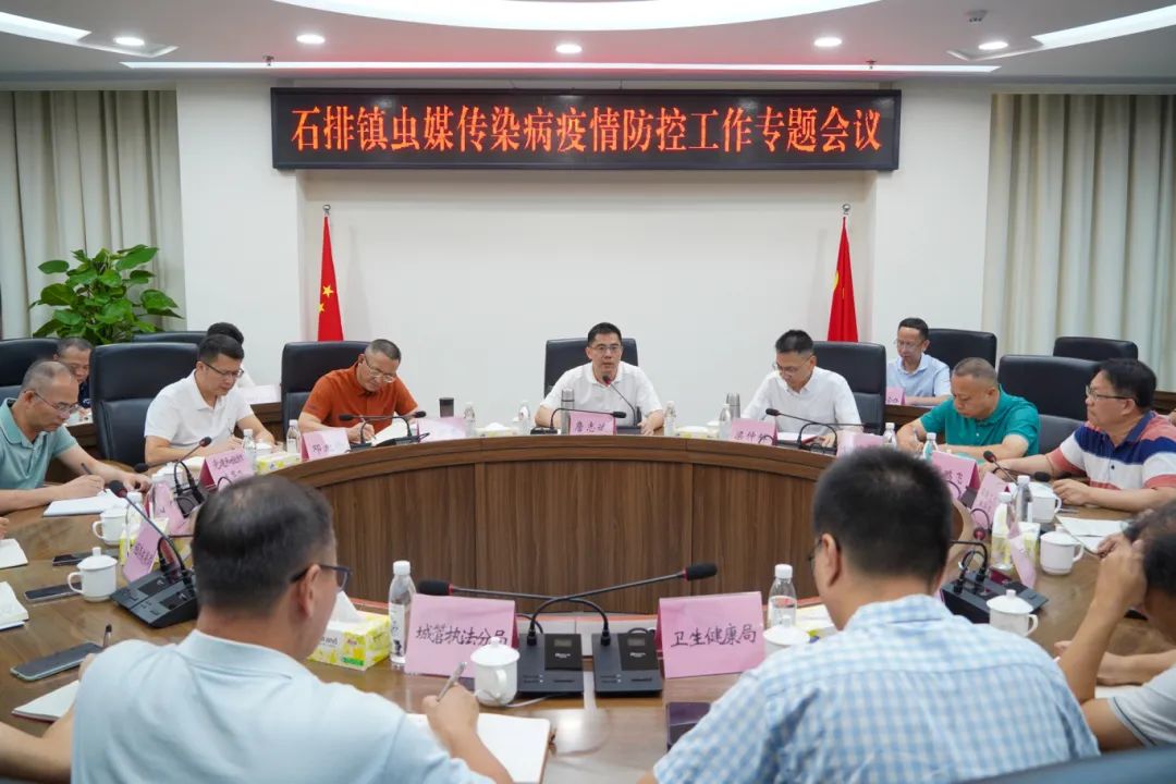 近日,石排镇召开虫媒传染病疫情防控工作专题会议,镇党委书记詹志斌,镇党委副书记、镇长梁仲辉,镇领导邝照东、钟伟发、邓旭伦、林鹏飞,镇卫健局、石排城管执法分局、市场监管分局等相关部门负责人参会。会议围绕当前虫媒传染病防控形势展开研讨,部署防疫保障工作。
