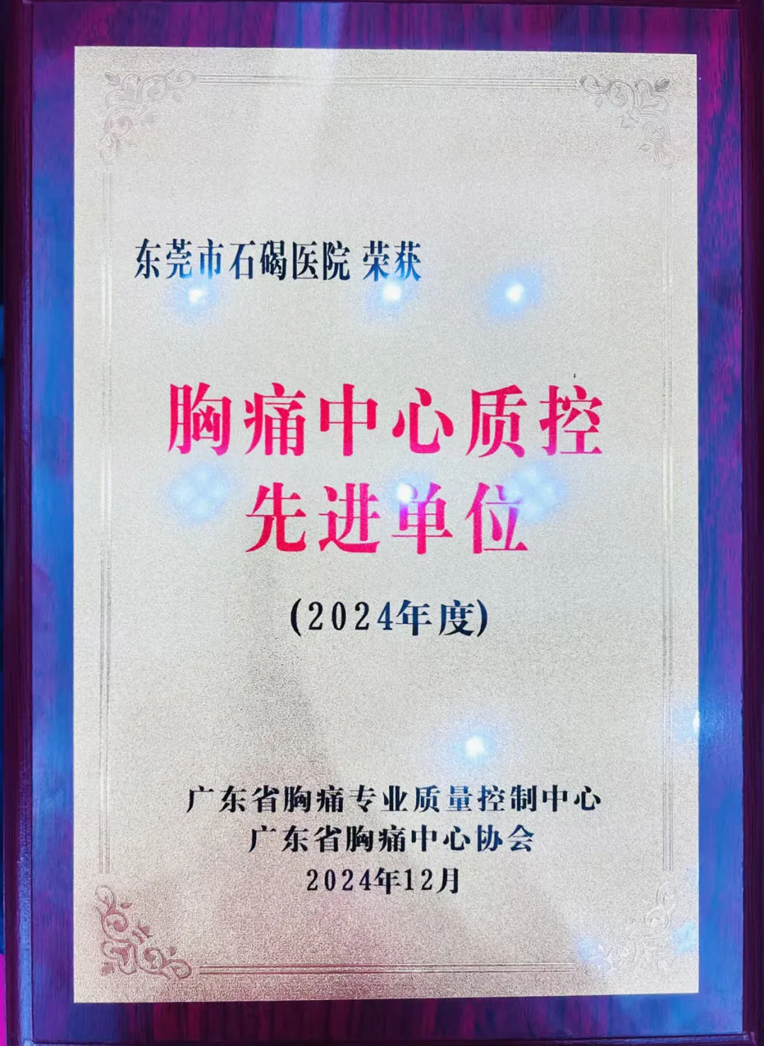 12月28日,广东省胸痛专业质控总结会在广州召开,会上发布了《2024年度广东省胸痛专业质控报告》,公布了2024年度广东省标准版、基层版胸痛中心质控先进单位、优秀质控专家和质控秘书光荣榜。东莞有9家医院获评2024年度广东省胸痛中心质控先进单位,其中,石碣医院被评为广东省胸痛中心(基层版)质控先进单位。