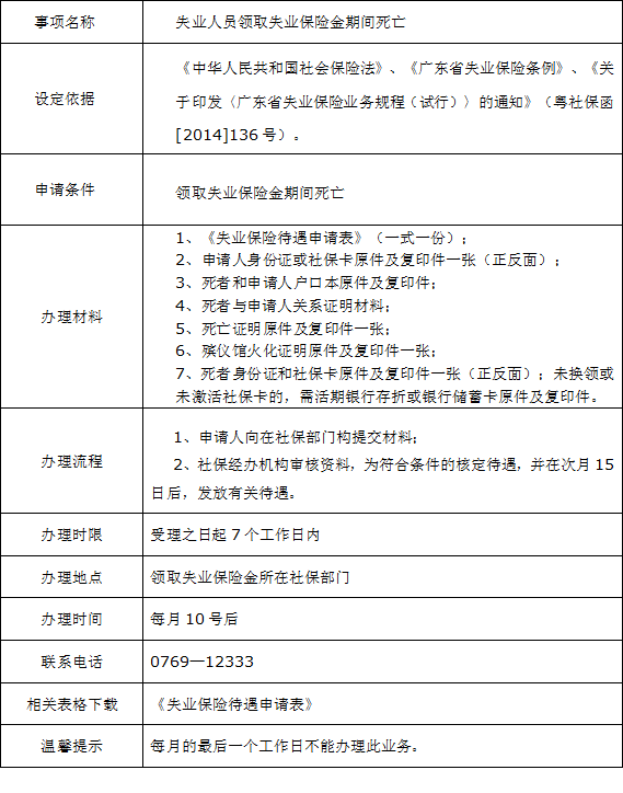 失业人员领取失业保险金期间死亡