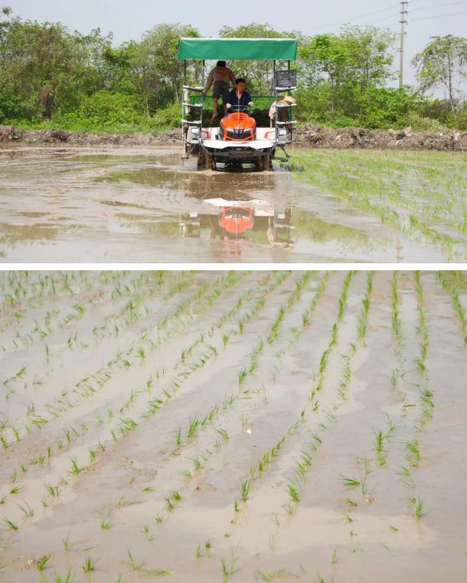 “我们今年购进了两台新的插秧机,每天每台可以插40亩左右,比人工的效率高了有三四十倍。”东莞市丰实农业发展有限公司负责人谢银康告诉记者,传统人工插秧每人每天只能完成一亩多一点,而机械化作业不仅大幅提高了效率,还显著降低了生产成本。