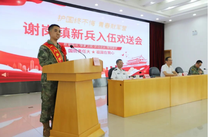 叶浩昌指出,优秀青年赓续谢岗红色基因,承载着父老乡亲的殷切期望,积极参军报国,体现了谢岗人民高度的思想觉悟和良好的革命传统,这是新兵的光荣,也是谢岗人民的光荣。希望新兵们倍加珍惜荣誉,坚定强军信念,用实际行动践行“报国梦”;努力拼搏进取,苦练军事本领,早日成为一名“听党指挥、能打胜仗、作风优良”的新一代标兵战士;树立扎根军营、建功立业的远大理想,用实际行动为国防建设出力、为谢岗增光,不辜负亲人和家乡人民的期望。