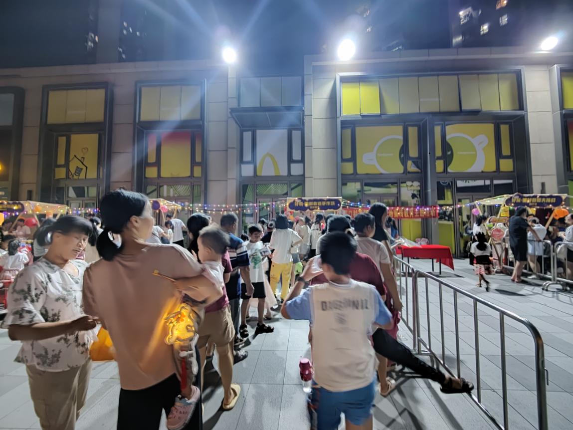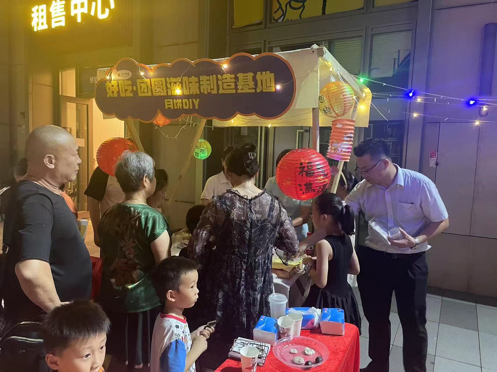 活动现场还有套圈圈、星空电影、鱼灯观赏等游玩项目打卡外,更设有美食品尝摊位,月饼、饮料、各类小吃琳琅满目,具有中秋特色的美食散发着浓郁的节日气息。