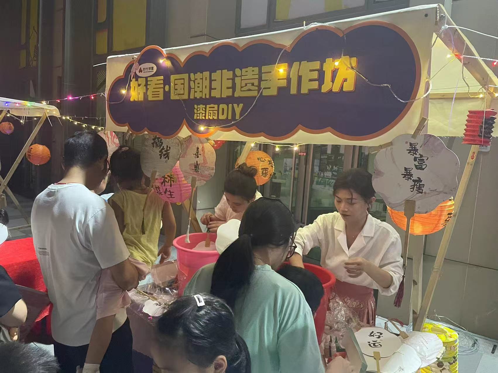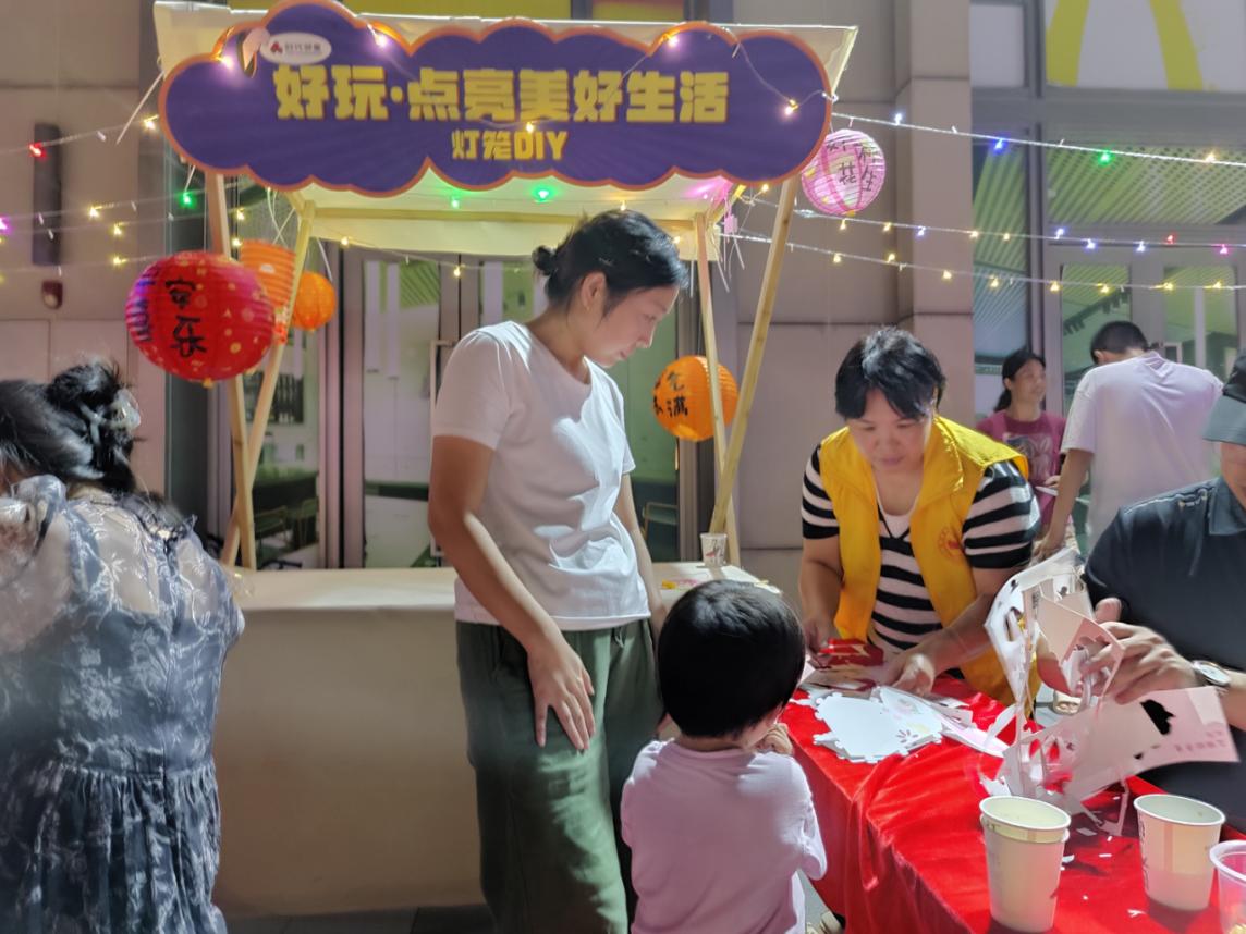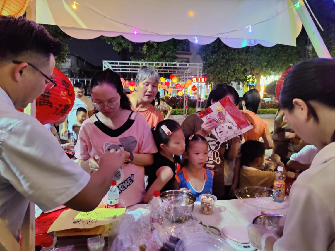 活动现场精心设置了多个非遗摊位供居民游玩,猜谜语、灯笼DIY、脸谱DIY、月饼DIY、美食品尝……让居民们近距离感受传统文化的独特魅力。一张张五彩斑斓、妙趣横生的灯谜卡,吸引了许多居民驻足观望。大家纷纷开动脑筋,互相讨论,希望能够猜出正确的答案。孩子们在家长的陪伴下制作灯笼、月饼,孩子在玩乐中感受传统文化的熏陶。通过猜灯谜等小游戏,增加了传统文化的趣味性,也弘扬传统文化元素,营造出社区其乐融融的欢乐氛围。