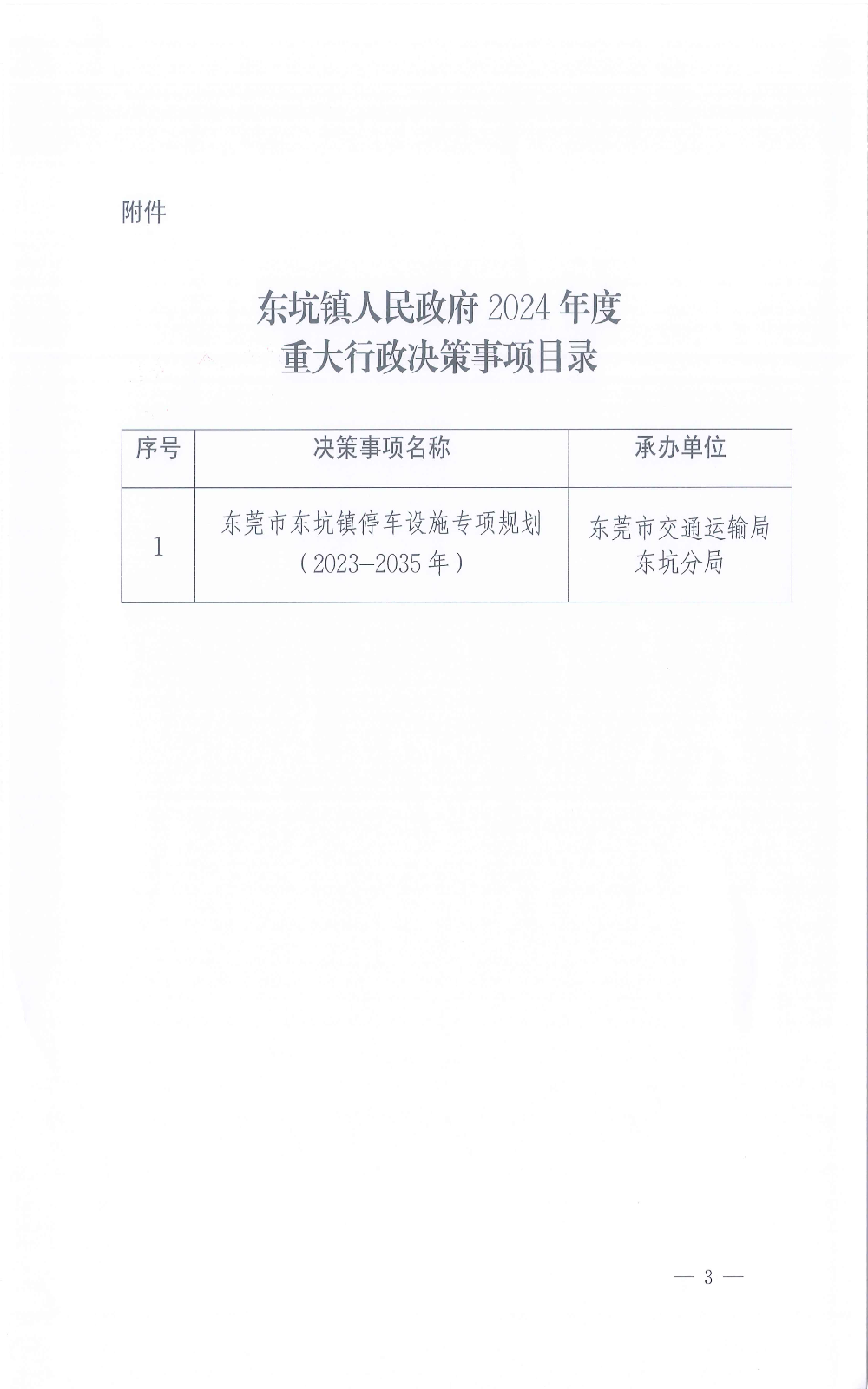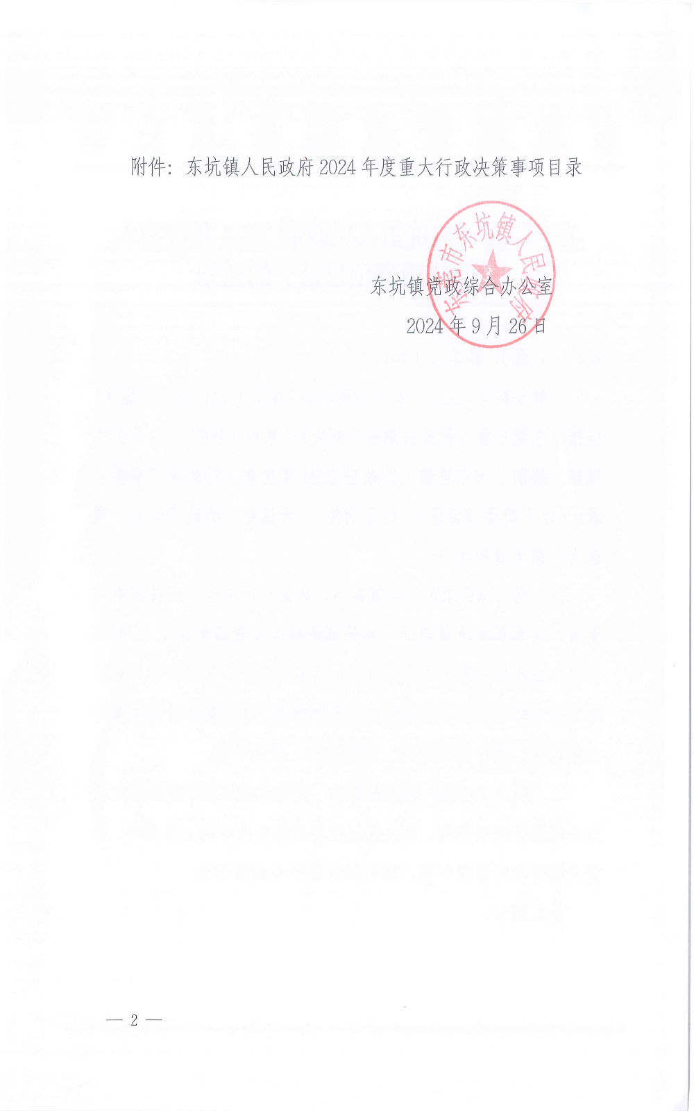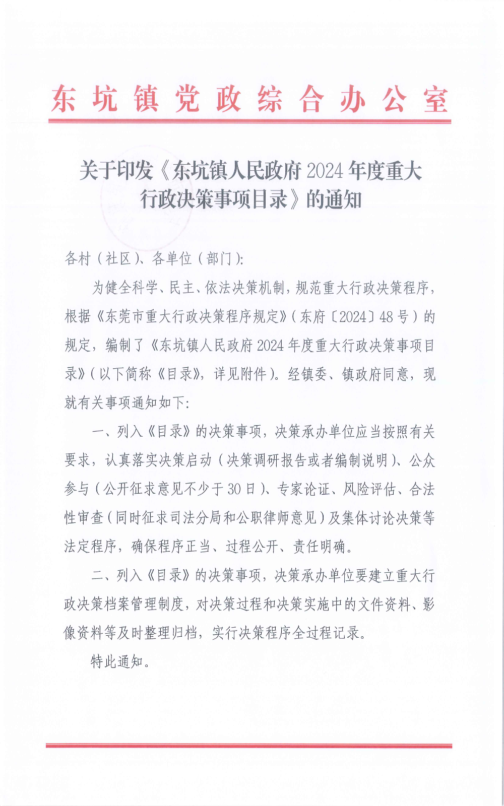 关于印发《东坑镇人民政府2024年度重大行政决策事项目录》的通知
