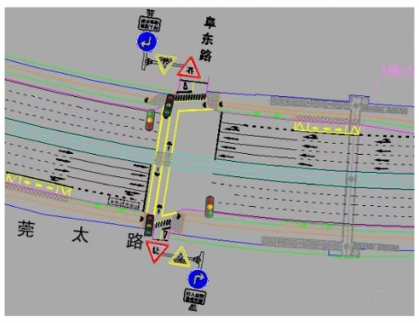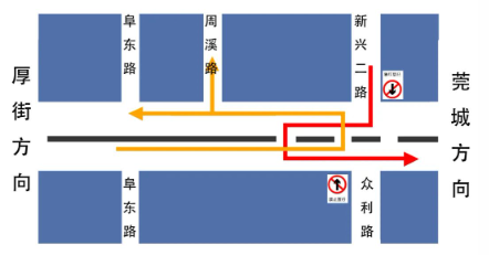 01 周溪路口改造方案 周溪路口临时封闭车辆行驶示意图 02 阜东路路口改造方案 袁屋边阜东路口临时封闭车辆行驶示意图 东莞市城建工程管理局 2024年1月5日