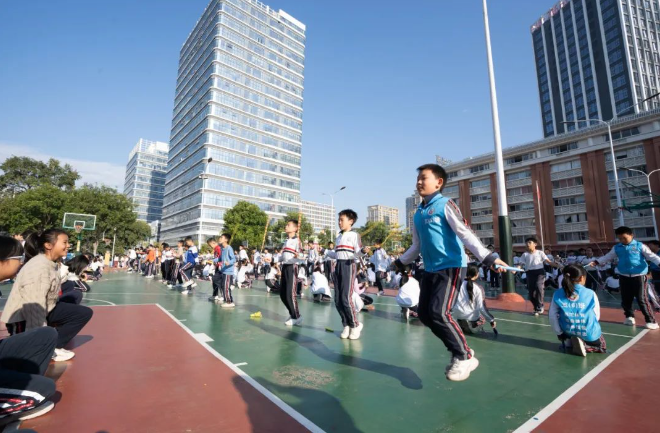 据介绍,阳光九小以科技赋能跳绳运动,采购专业比赛级别的跳绳计算设备,实现精准计数、实时显示;同时,利用跳绳APP,在学生家庭线上竞赛,为同学解锁跳绳“新玩法”,打造更加准确、公平、有趣的运动氛围。更重要的是,此举为全校师生营造更加专业的赛事体验,可以极大调动参与度,大家自然会投入其中。 值得一提的是,阳光九小还设立“跳绳风云榜”活动,由各班定期选出不同的代表选手,开展班级、年级之间比赛,既能保证“人人能参与跳绳”,还能不断选拔出优秀人才。另外,个人还能报名参加超越风云榜,只要超越自己以前成绩,就有机会“上榜”,在全校展现自己。在浓厚的跳绳氛围中,同学们的身体素质及意志都得到显著提升。
