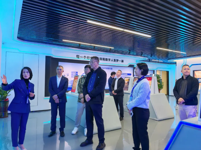 在东莞中科智汇信息科技有限公司,调研组一行现场参观企业数字人展厅,现场查看了AI数字人在品牌宣传、政务服务、文化旅游及教育等领域的创新应用,深入了解企业的技术研发情况及与相关行业龙头企业的合作情况。