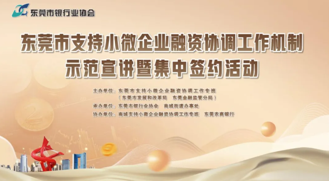2月20日上午,由东莞市支持小微企业融资协调工作专班主办,东莞市银行业协会和南城街道办事处承办的“金融润莞企 融资正当时”东莞市支持小微企业融资协调工作机制示范宣讲暨集中签约活动圆满落幕。