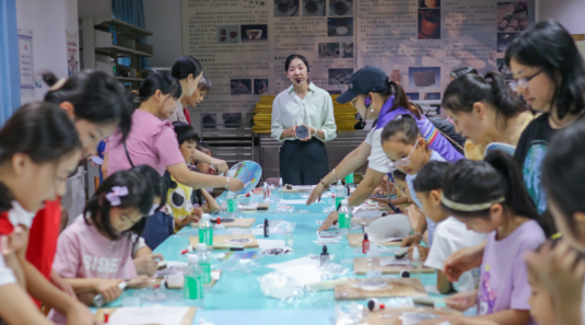 “蘸墨要轻,拓印时慢慢把纸抚平……”在随后开展的“千年一瞬”活动中,讲解员手把手教孩子们在仿制的陶器上,一点点印出古老的纹路,在手工传拓中感悟文化的魅力。