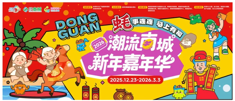 从2026的第一缕阳光,到元宵佳节的万家灯火。刚刚过去的两个月,东莞南城化身全城最火打卡地!新春游园会点亮璀璨烂漫,迎春花市带来烟火人间,各大商圈缤纷玩法人气满满,交个“蚝”运博物馆里年味十足······2026潮流南城·新年嘉年华在欢声笑语中圆满落下帷幕。 这是一场属于所有人的新年派对。70天的时间里,我们共同见证了33场精彩活动轮番上演,累计接待市民游客超320万人次,累计带动消费13亿元。那一张张定格在镜头前的笑脸,成为了这个新年最温暖的印记。我们收集了满满一筐的快乐与感动,现在跟着镜头一起重温这场属于2026的高光时刻吧。 逛花街看等会 年味满满 从元旦到元宵,南城的年味,从未断档。 今年,在东莞中心公园,2026东莞迎春花市与2026潮流南城·新春游园会双线并行,传统年味焕发新意,为城市新春注入浓浓的节庆氛围。 行花街,过大年。2026东莞迎春花市现场繁花似锦,蝴蝶兰、年桔、水仙竞相绽放,成为家家户户的“标配”年味。市民不仅能买年花,还可一站式打卡年货:手工油角唤起地道回忆,春联、利是封琳琅满目,处处洋溢着过年仪式感。 2026潮流南城·新春游园会也正式开启。南城专属IP“蚝仔”人偶点亮主灯,园区灯组、树灯与建筑装饰灯应声齐亮,万千华灯汇聚成星河,夜空熠熠生辉;南城“帅帅”“美美”人偶穿梭互动,新春热闹气息瞬间拉满。 活动以深度融合传统年味与潮流玩法,荟萃定制花灯、原创IP灯景,联动主题日、潮玩市集、美食街区等多元业态,以“花灯璀璨、主题活动、新春市集”的丰富矩阵,吸引众多市民热情打卡。抱抱桶DIY、荷灯祈福、新春开运大巡游、迎财神快闪等趣味互动轮番上演;新春序曲、国潮音乐会等文艺演出燃情绽放,潮味新春氛围感拉满。 连续三年回归的「正!香港」嘉年华汇聚超200个莞港品牌,首创“东莞制造X香港设计”模式,开通“港货到家”服务。香港警察乐队演出、巨型扭蛋机等吸引众多市民,实现销售与文化双赢。 传统年俗与港式风情在此交汇,共同拼凑出新春的热烈与多元。南城以满满诚意,陪大家过一个有滋有味的幸福年。 南城有好礼 精彩不停歇 新年的南城,快乐从不打烊。“南城有好礼”六大主题活动轮番上阵,承包市民游客整个新年的吃喝玩乐购,每周都能遇见新惊喜。 美食乐享日率先拉开味蕾盛宴,在西平新地中心人气爆棚,咖啡茶饮、甜品烘焙、地道莞味齐聚一堂,食客们用舌尖开启新年第一份满足。更有年味满满的亲子课堂,亲手制作汤圆饺子,感受阖家团圆的意义。 新年音乐夜则是用旋律点燃东莞印象汇的夜晚,Jay周杰伦生日歌友会唱响经典青春金曲,台下观众挥舞着荧光棒,跟着一起合唱,音浪仿佛还在耳边回荡~ 福运大搜罗让东实C park化身寻福地图,市民们穿梭在商圈街巷,集福运打卡抽取惊喜好礼。还可解锁N种新年好运玩法:艺术共创互动,一起画出马年长卷;随机舞蹈+乐队演唱,现场氛围感拉满;新春拓印DIY,印下新春祝福~ 潮玩运动会将运动场搬进时代城广场商圈,飞盘九宫格、颠个网球、快乐乒乓球等项目吸引众多市民前来参与挑战,汗水与快乐交织,活力满满。 大小同乐日则成了亲子家庭的专属天地,聚集100组小厨神,在东莞德汇·嘉里广场同台竞技,一起完成新年菜式,享受温馨的亲子时光。 而搭子挑战赛更考验默契和配合,前往莞香印巷萤火广场,带上毛孩子或是家人好友成为搭子,在欢声笑语种收获一份特别的默契。 周周不同玩法,场场人气爆棚。南城有好礼用花样百出的活动和惊喜连连的福利,让每一位市民游客都能找到属于自己的快乐节奏。 博物馆过大年 潮年打卡奇遇 这个新年,不仅有逛不完的花市、吃不完的美食,还有一种全新的打开方式——走进博物馆、带上打卡护照,开启一场城市探索之旅,用脚步记录属于自己的新年故事。 交个“蚝”运——博物馆里过大年造趣集,将千年蚝文化与新春佳节巧妙融合,吸引了众多市民前来游玩。 展厅里,关于蚝的历史故事娓娓道来;而最受欢迎的,当属交个“蚝”运打卡互动,多多年货好礼免费抽!手作区里同样人头攒动,非遗螺钿、贝壳灯、贝壳发卡、蚝壳首饰盒等DIY创意体验,让人们在动手创作中,感受博物馆带来的别样年味。 潮年有礼打卡护照则成为串联整场嘉年华的“通关文牒”。 市民们拿着这本趣味十足的护照,穿梭于各大活动点位,每打卡一处便盖上一个专属印章。从美食乐享日盖到搭子挑战赛,从音乐夜现场盖到博物馆展区,集满印章兑换好礼那一刻,满满都是成就感,而最终大奖也于元宵当晚被幸运市民抽中。 一本新年护照,串起南城的角角落落;一座博物馆,解锁过年的全新可能。 潮流IN乐 热血街头 音乐响起,篮球落地,这也是南城新年最燃的BGM。潮流音符与街头篮球交织,点燃新年的热情。音乐流淌在南城的街头巷尾中,2026潮流IN乐年度颁奖盛典上,本土音乐人轮番登场,用一首首原创作品引爆现场。 潮流东莞“火柴盒”东莞(南城)城市艺术TIME则把舞台搬进商圈与广场,乐队演唱、即兴Live show随时上演,让人们与一场小型音乐会不期而遇,随节奏倾情哼唱。 耐撕街头百分大战系列将热血进行到底,篮球场上,球员们挥洒汗水,攻防转换间酣战不休,每一个进球都引爆观众阵阵喝彩。呐喊声此起彼伏,让这个夜晚变得滚烫炽烈。 2025广东万里碧道东莞南城碧玉湖铁人三项赛,聚集350名中外