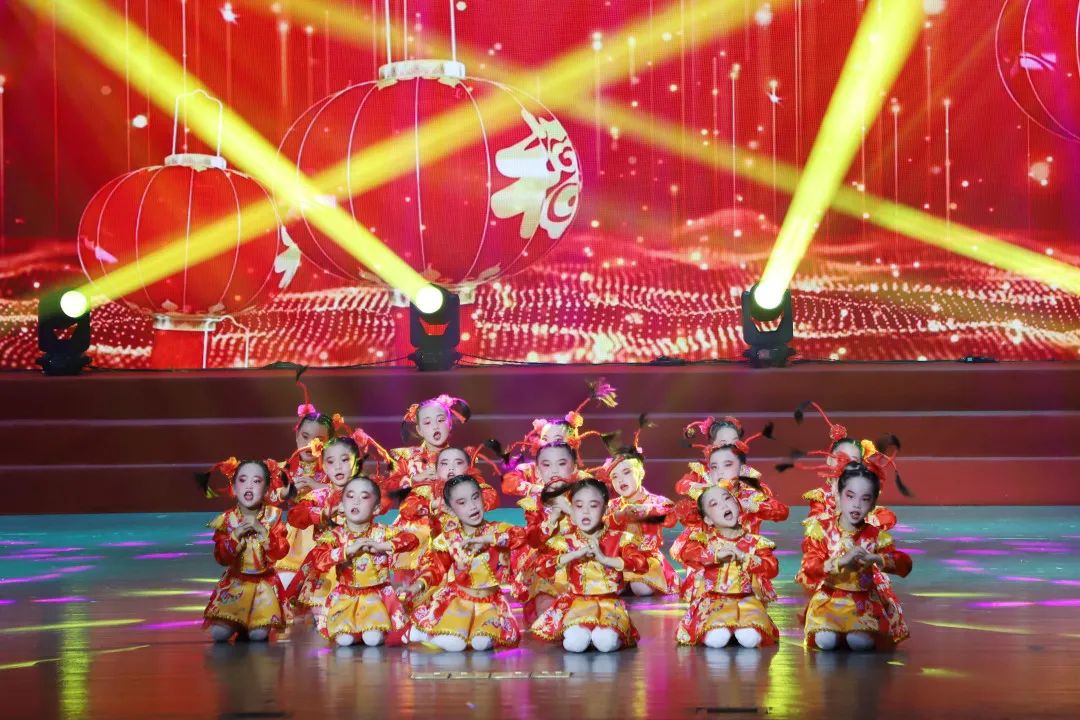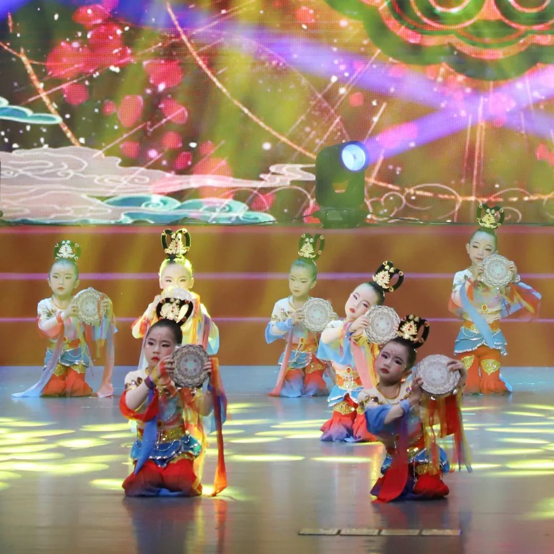 展演在喜庆、热闹的节目——《福娃嬉年》中的开场音乐中拉开帷幕,动感的节奏瞬间点燃了现场的气氛。随后,琵琶声响,一群舞姿灵动的飞天少女带观众“穿越时空”,共赴一场敦煌美梦。《雏凤舞瑞狮》《映山红》《奇狮妙想》等由全镇公民办学校准备的17个精彩节目轮番上演。