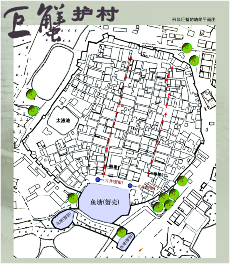 《规划》在保护塘尾古村“巨蟹护村、状如农历十二的晴空朗月、28星宿方位”的整体格局基础上,强化构建以塘尾古村为核心、“一心一轴,圈层发展”的中观空间结构,并在宏观层面以生态园为核心,通过感知体系的构建,联合塘尾村、南社村、牛过蓈村、埔心村、李家坊,集聚区域文化、景观资源,推进区域发展。