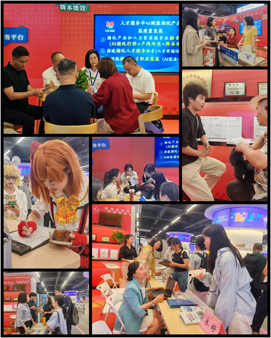 经统计,四天的展会,人才服务中心摊位提供了累计千次的咨询、匹配服务,近百家企业主动添加机构微信进行后续对接合作,收到涵盖潮玩产业设计师、跨境电商运营、视频剪辑等有趣岗位在内的人才简历53份。