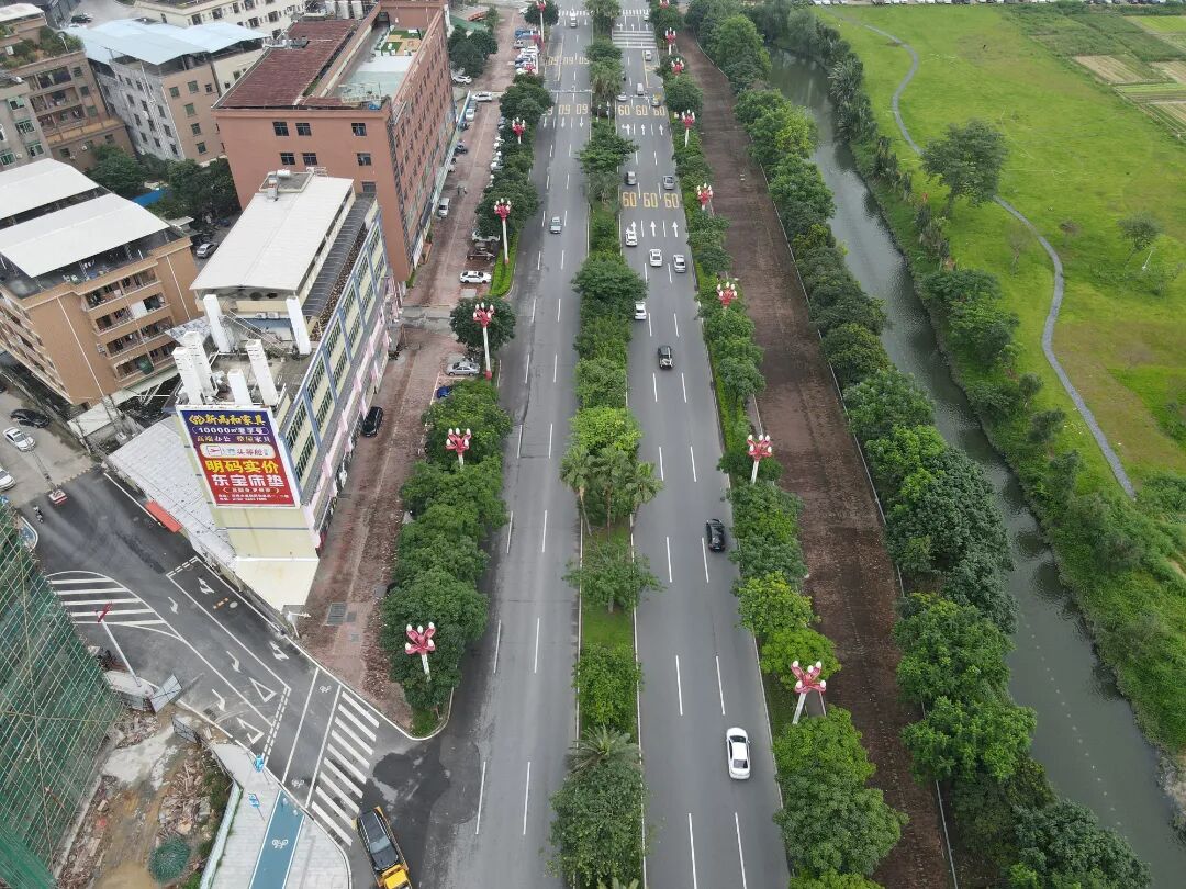 结合潮玩片区、黄家壆现代产业园等重点片区路网规划,石排镇有序推进10条总长19.8公里道路的交通综合整治及28.65公里非机动车道建设,全面升级沿线慢行系统、市政配套及绿化景观,提升道路通行品质。重点攻坚龙腾路(里仁路至东园大道段)廊道一体化改造,通过统筹推进人行道与河道景观融合