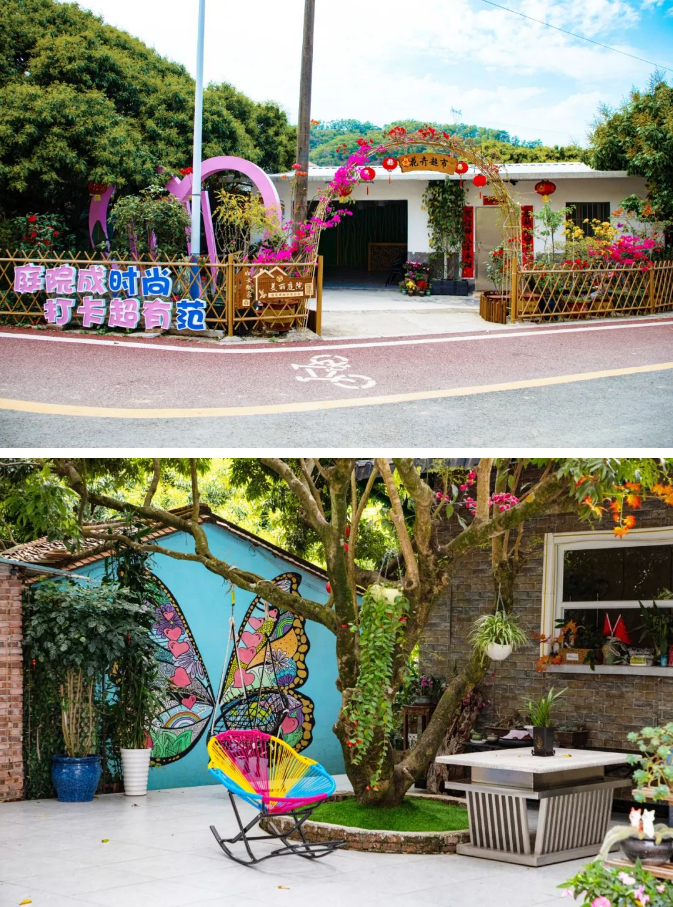 漫步南面村中,精致的庭院微景观、典雅的艺术果园彩绘与盛开的荔枝花相映成趣。每一户“美丽庭院”都独具特色,展现了村民们的生活智慧与艺术创造力。