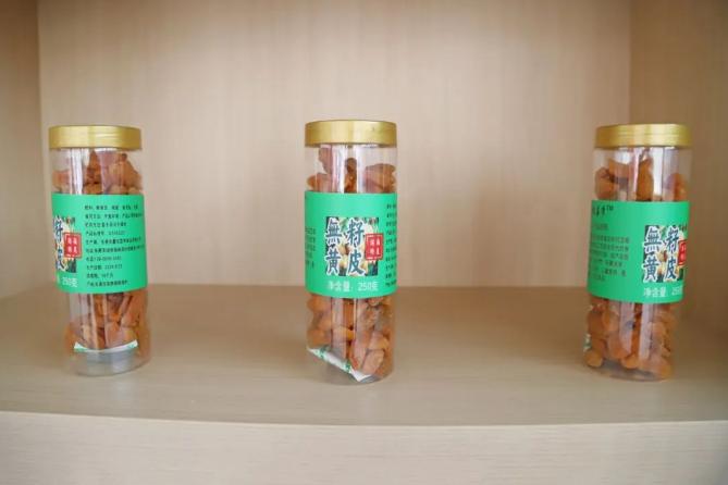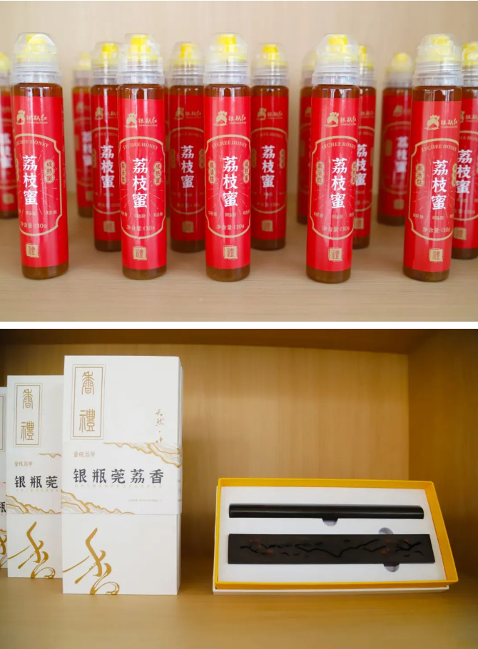 为了延长荔枝产业链,谢岗镇妇联联合东莞市腾山文化传播有限公司推出荔枝蜜、荔枝干、文创礼盒等衍生品。