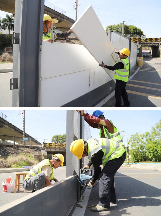 4月15日,记者在谢岗镇既有大黎路跨线桥改造工程现场看到,工人们正在安装围蔽设施,为下一阶段的地面清表和旧桥拆除工作做好充分准备,改造后将形成双向六车道跨铁路通道,成为连接莞惠路与粤海大道的核心枢纽。