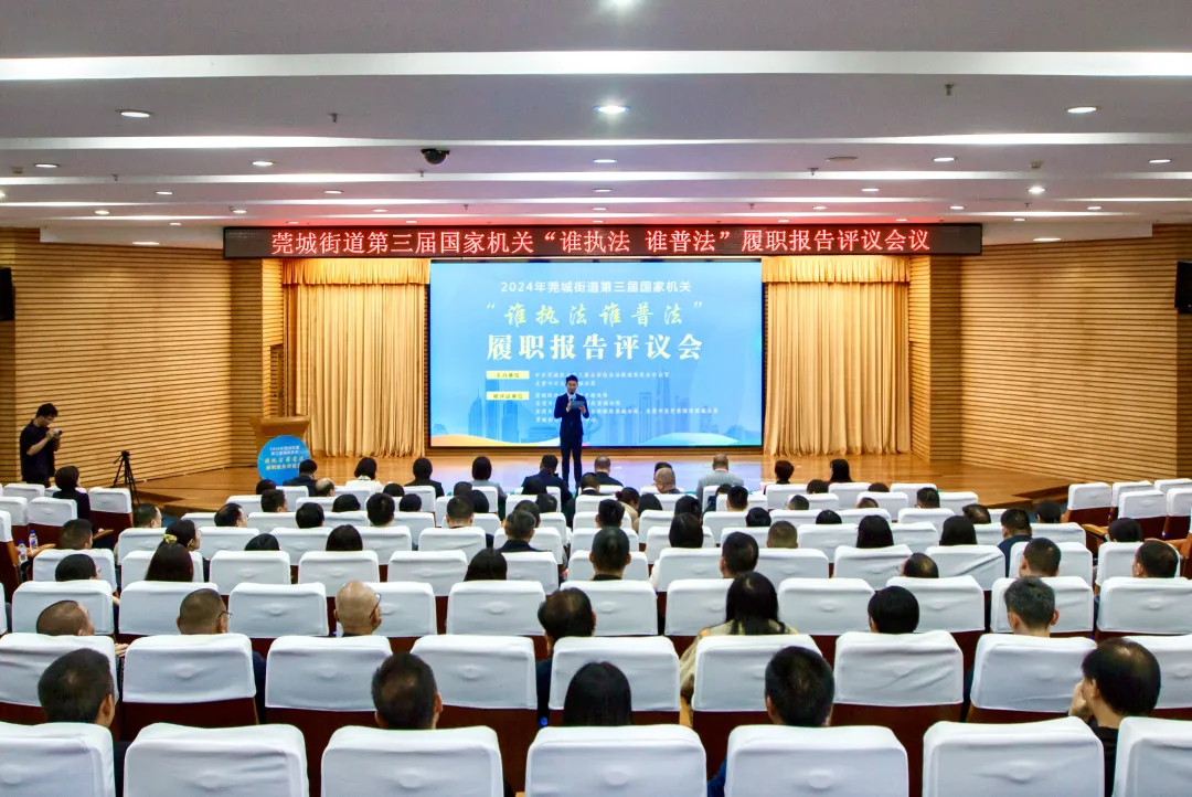 为夯实国家机关普法主体责任,提升“谁执法谁普法”工作质效,近日,莞城街道开展第三届国家机关“谁执法谁普法”履职报告评议会议。莞城街道领导叶俊杰、陈玉东、卢毅、张永红、萧健峰、张庆君,以及街道相关单位、部门,各社区代表,市人大代表,市政协代表,媒体代表,律师代表,普法业务骨干约100人参加会议。