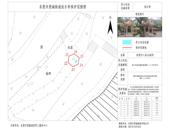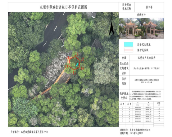 为加强烈士纪念设施的保护管理,发挥烈士纪念设施褒扬英烈、教育后人的红色资源作用,根据《中华人民共和国英雄烈士保护法》《烈士褒扬条例》《烈士纪念设施保护管理办法》等有关规定,经莞城街道办事处同意,现将东莞人民公园抗日亭保护范围方案公布如下: