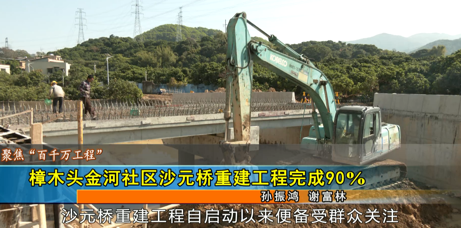 金河社区党委副书记蔡伟钦:从(去年)11月初(开工)到现在已经整整三个月,现在的完成的进度已经去到90%,现在剩下周边的那些过了年之后就逐渐完善,目前桥面今天就开始铺设,过两天人走是没问题的。